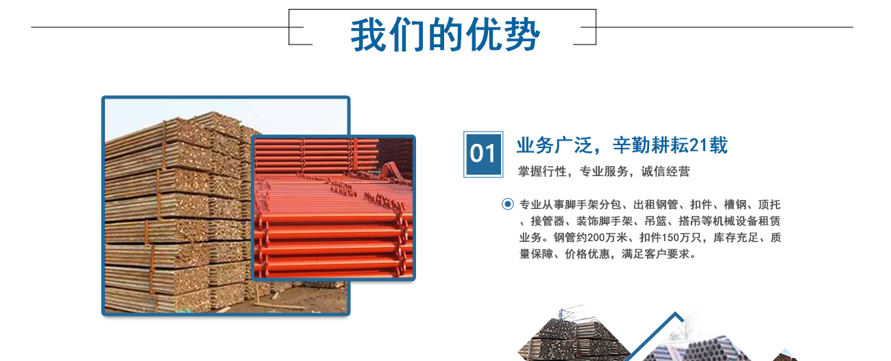 安徽海洋建筑工程機(jī)械租賃有限公司、淮南佳輝建筑工程有限公司是由淮南興勝鋼管租賃公司起家的,從事專(zhuān)業(yè)腳手架資質(zhì)分包、鋼管、扣件、槽鋼、頂托、接管器、裝飾腳手架搭設(shè)、吊籃、搭吊等機(jī)械設(shè)備的租賃業(yè)務(wù)。公司成立于1999年,憑借著專(zhuān)業(yè)水準(zhǔn)和成熟技術(shù),在業(yè)內(nèi)迅速崛起并不斷發(fā)展創(chuàng)新。